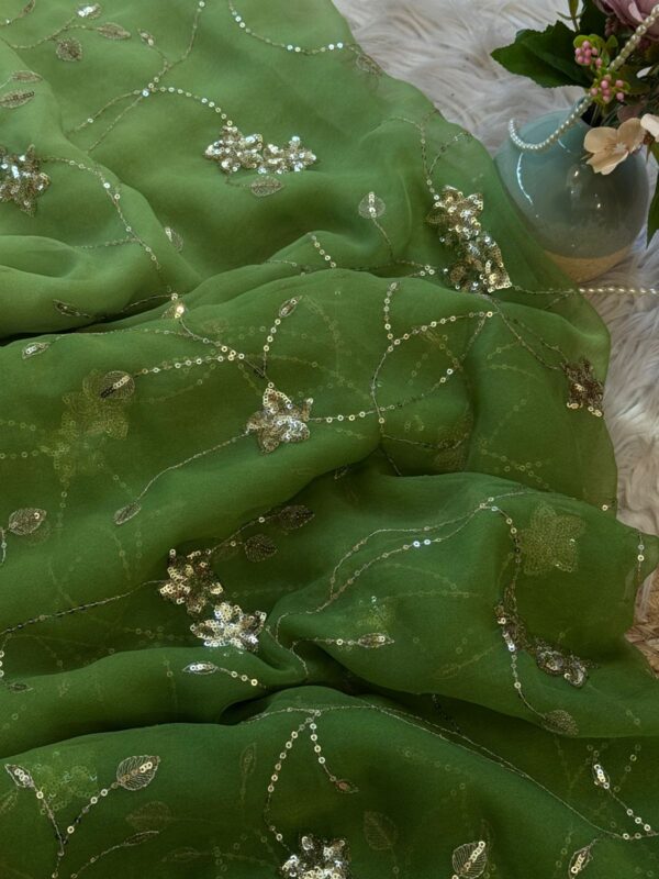 Heavy sequins jaal work saree