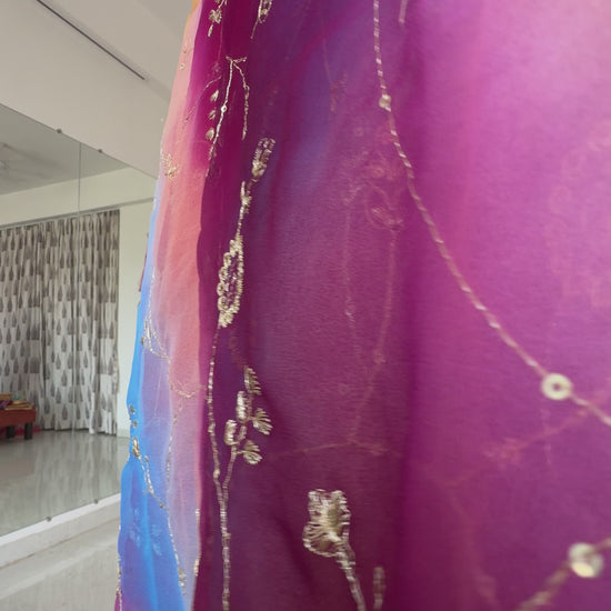 Multi colour saree in aari jaal work